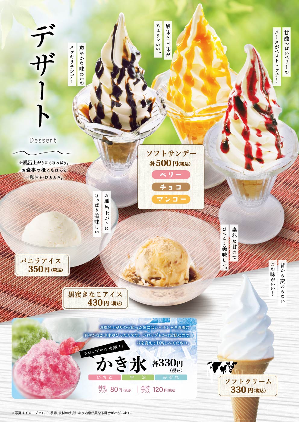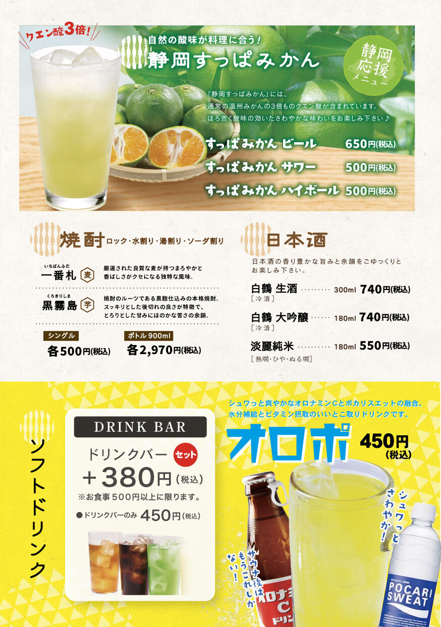 お風呂や 岩盤浴の後は、是非一度お寄り下さい。